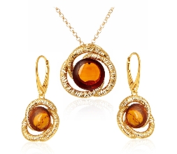 Biżuteria srebrna pozłacana z koniakowym burs ...
