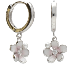 Kolczyki srebrne kwiatki z różową masą perłow ...