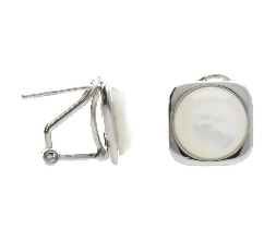 Kolczyki srebrne z białą masą perłową kwadrat ...
