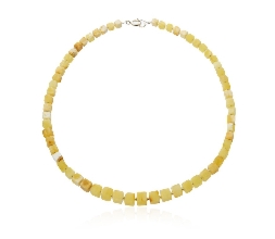 Naszyjnik srebrny kostka z żółtym bursztynem ...
