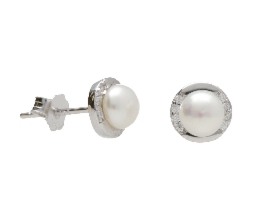 Kolczyki srebrne z cyrkoniami i białą perełką
