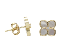 Kolczyki srebrne pozłacane kwiatki z białą ma ...