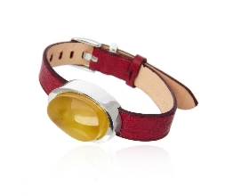 Bransoletka srebrna z żółtym bursztynem pasek ...